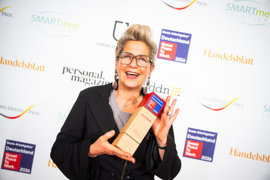Vier­fa­cher Erfolg bei Great Place to Work® 2026! HSP STEUER belegt Top- und Erst­plat­zie­rungen und zeigt sich bran­chen­füh­rend bei gelebter Team­ori­en­tie­rung.