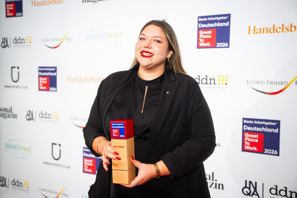 Beson­ders hervor­heben möchten wir an dieser Stelle den 5. Platz bei den „Besten Arbeit­ge­bern für Frauen 2026“. Die Steuer- und Consul­ting­branche galt lange als konser­vativ. Wir haben in den letzten Jahren hart daran gear­beitet, diese veral­teten Struk­turen aufzu­bre­chen. Dass wir Frauen echte Perspek­tiven, faire Karrie­re­chancen und flexible Führungs­mo­delle bieten, z. B. bis hin zur Part­ner­schaft in Teil­zeit, wurde durch dieses spezi­fi­sche Ranking nun eindrucks­voll bestä­tigt. Chan­cen­gleich­heit ist bei HSP STEUER kein Buzzword, sondern gelebte Praxis.